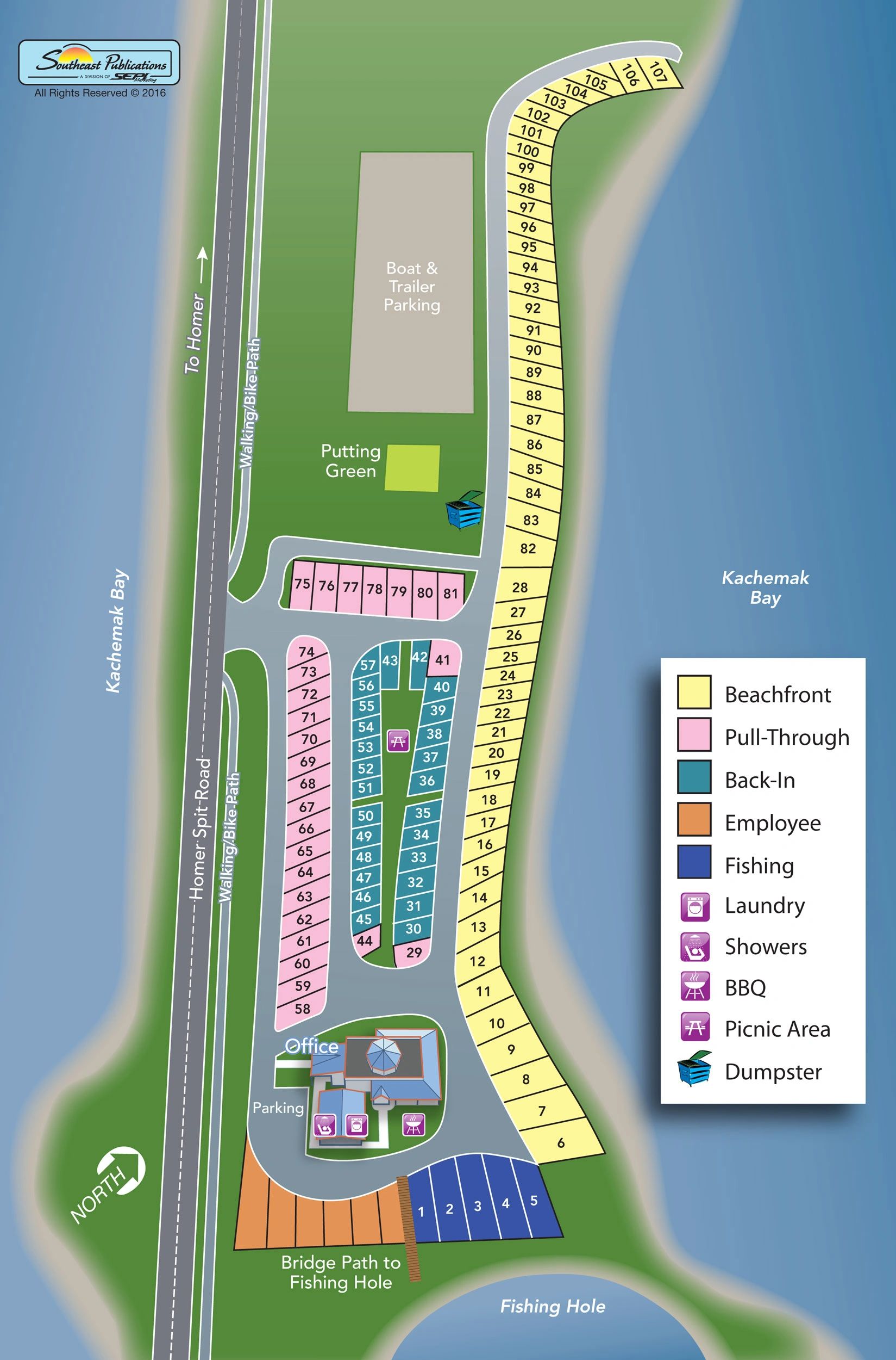 RV sites offer complete (full) hookups of city water/septic, 20/30/50 amp power and access to restrooms and unlimited showers. We recommend the best local attractions, charters and restaurants to make your Alaskan visit unforgettable.